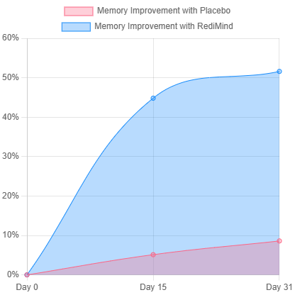 The International Shopping List Test, the standard in short-term memory evaluation, was administered to 56 participants to evaluate the effectiveness of RediMind versus placebo. Here are the results: